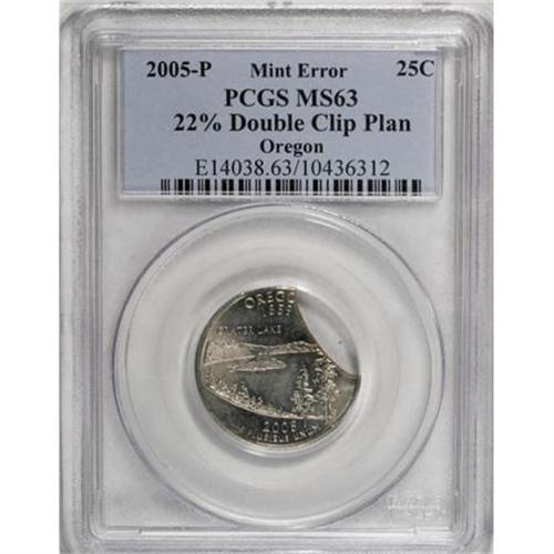 <B>2005-P 25C Oregon Statehood Quarter--22% Double Clip Planchet--MS63 PCGS.</B></I><BR><BR><b>Shipping:</b> Coins & Currency (<a target="_blank" href="http://www.heritageauctions.com/common/shipping.php">view shipping information</a>)