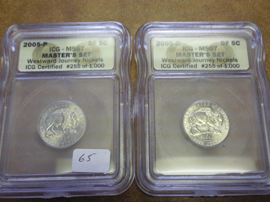 2005-P/D BISON NICKEL ICG MS67, 2 SLABS