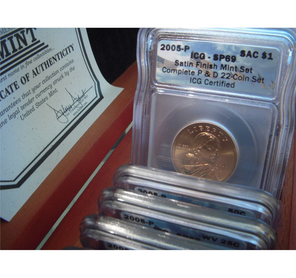 2005 P D MINT SET ICG SP69 SATIN FINISH 22 COIN SET. PCGS VALUE=$650