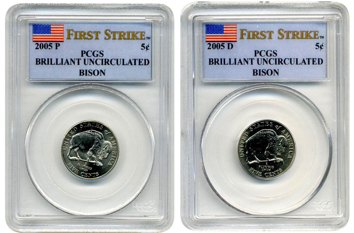 Up for your consideration is this absolutly beautiful 2005 P & D PCGS Buffalo 5c. (two coin set) "First Stike"