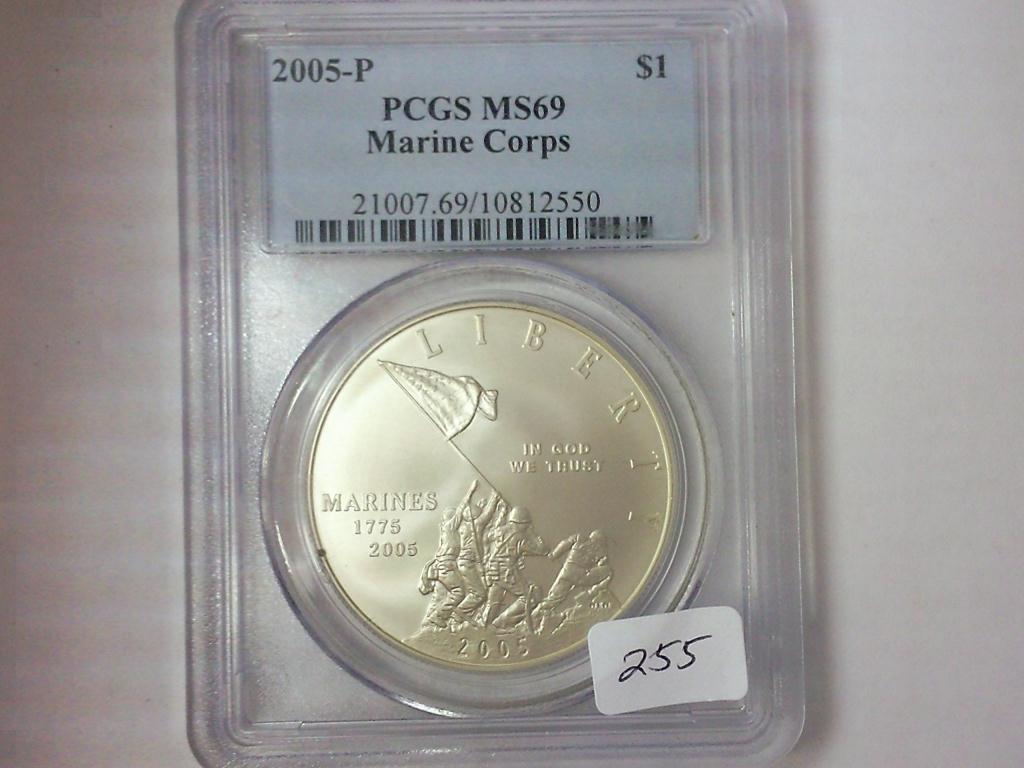 2005-P MARINE CORPS SILVER DOLLAR PCGS MS69