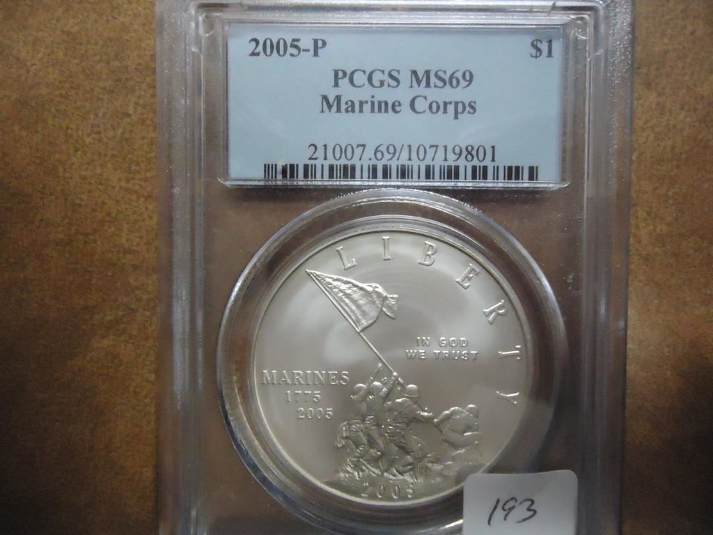 2005-P MARINE CORPS SILVER DOLLAR PCGS MS69