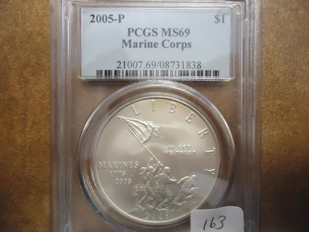 2005-P MARINE CORPS SILVER DOLLAR PCGS MS69