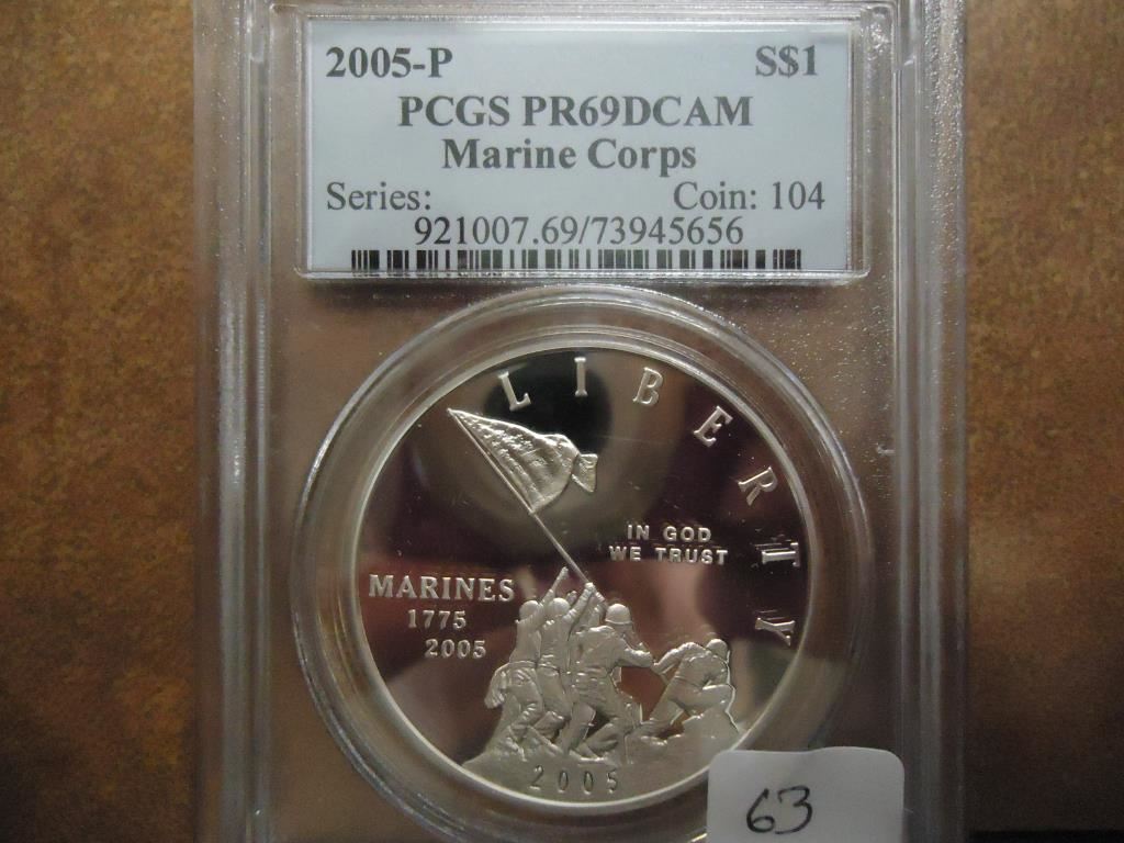 2005-P MARINE CORPS SILVER DOLLAR PCGS PR69 DCAM