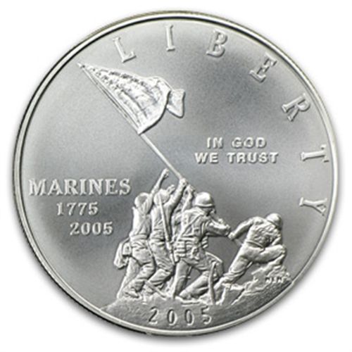 2005-P Marine Corps 230th Anniv. $1 Silver Commem MS-70 **|**|** Year: 2005 ; Mint Mark: MS-70 ; Grade: P - Philadelphia ; Denomination: $1 ; MSRP: $300