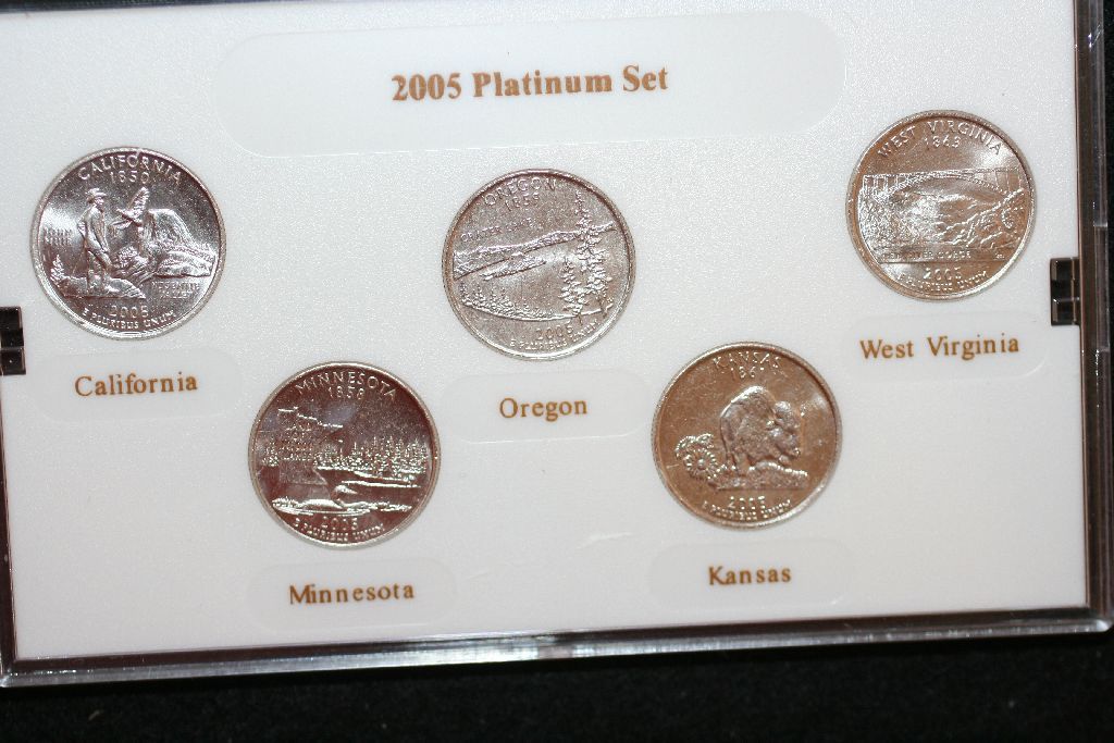 2005-P US Mint State Quarter Proof Set; BU, Layered in Platinum