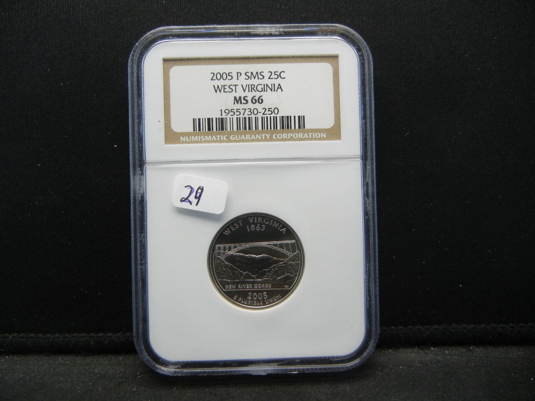 2005 P West Virginia State Quarter. NGC slabbed as MS 66, High Grade.