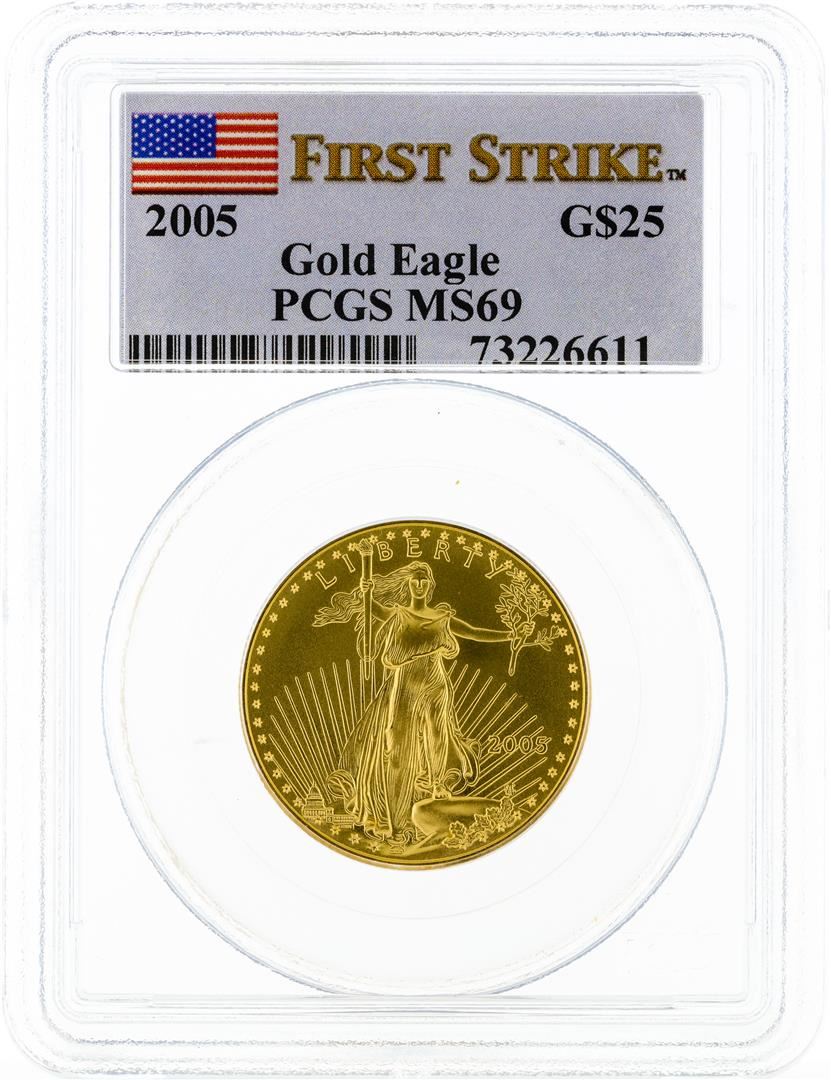 One 2005 PCGS MS69 $25 Eagle Gold Coin. PCGS Certified.