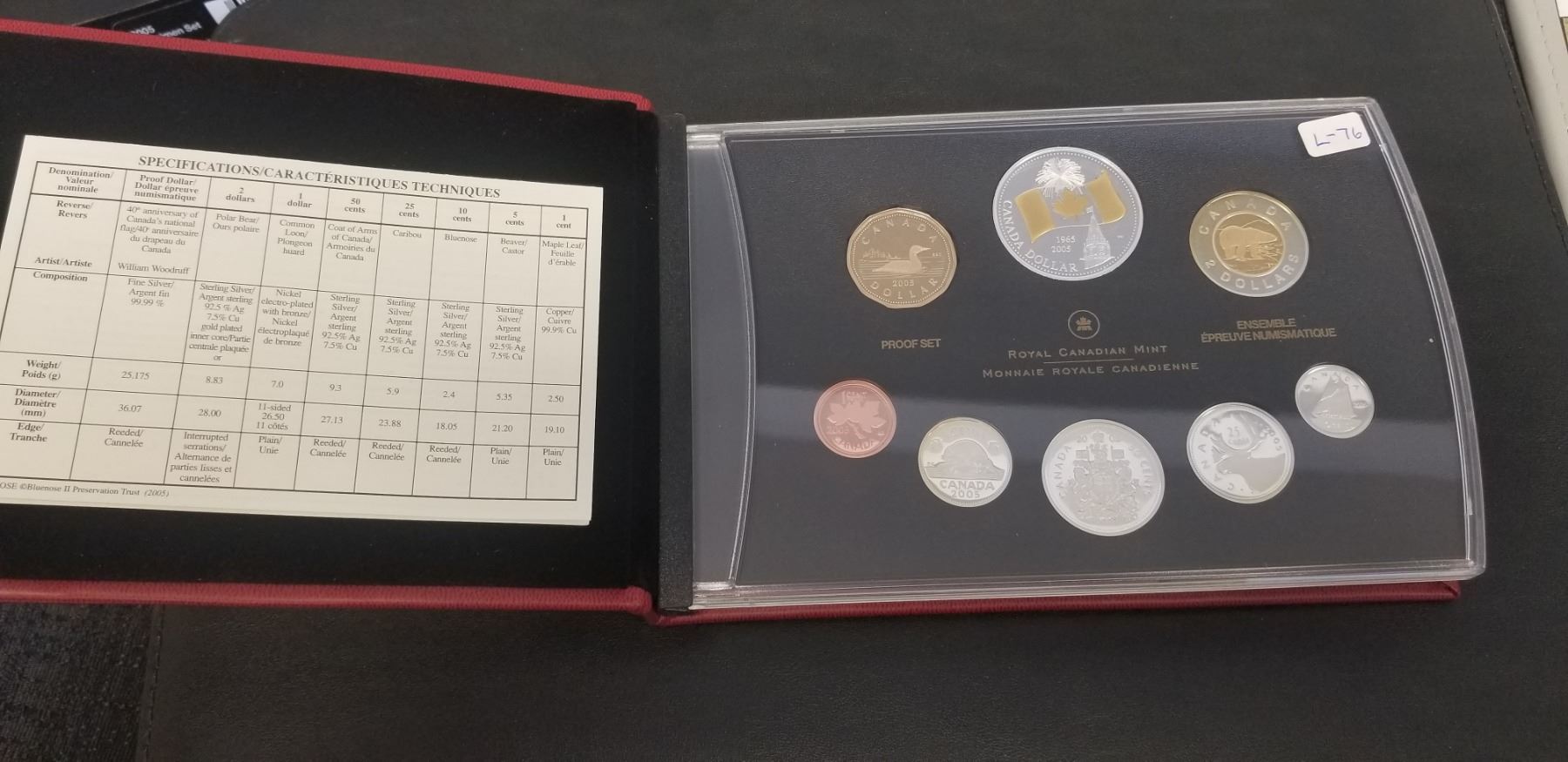 2005 PROOF SET OF CANADIAN COINAGE "40TH ANNIVERSARY CANADA FLAG Double Dollar Proof Set