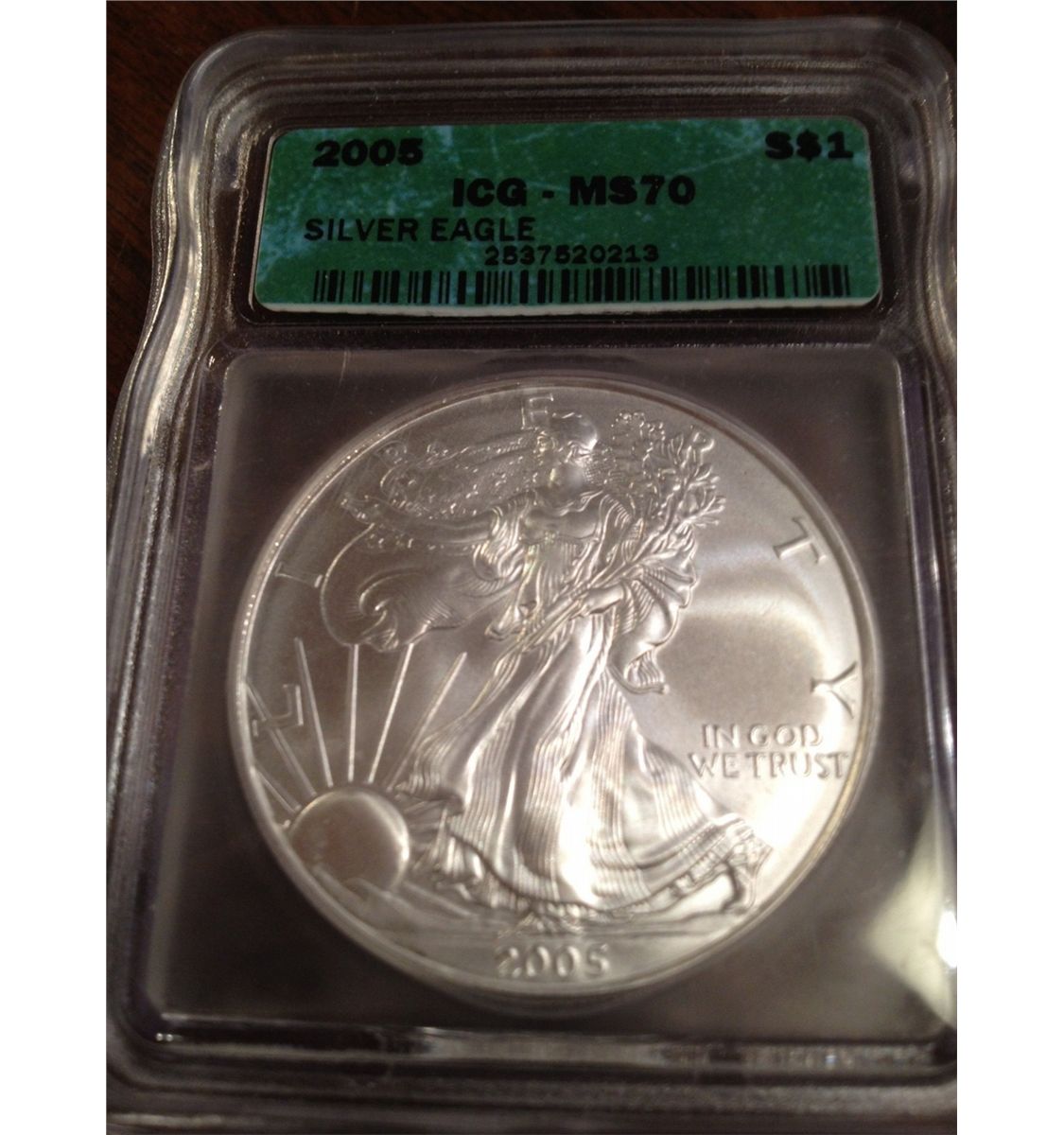 2005 PURE SILVER AMERICAN EAGLE, MS-70-HIGHEST POSSIBLE GRADE