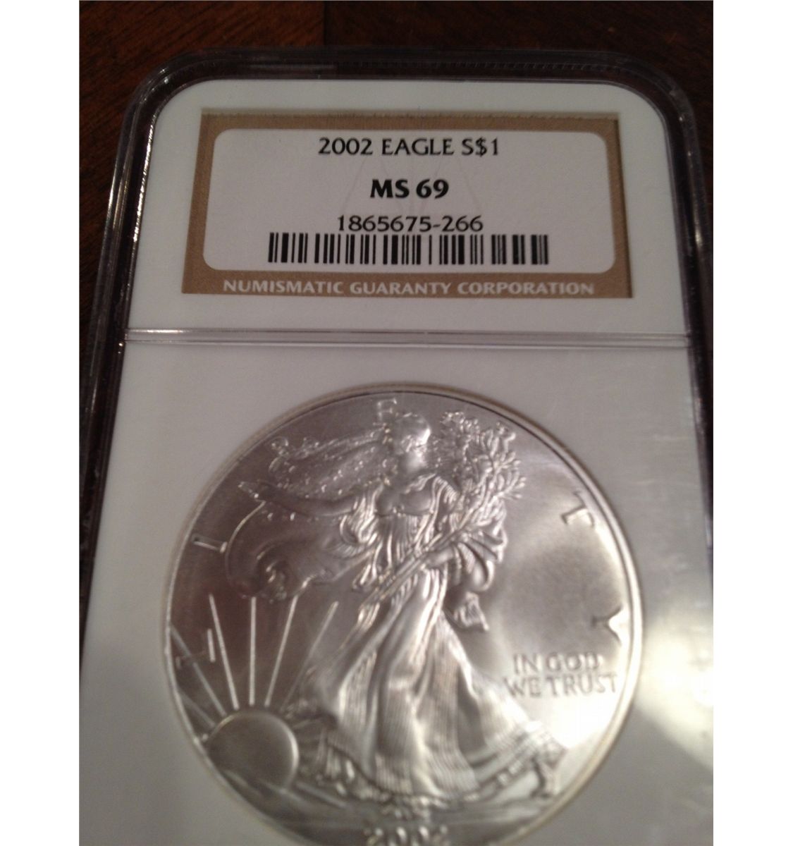 2005 PURE SILVER AMERICAN EAGLE, NGC MS-69