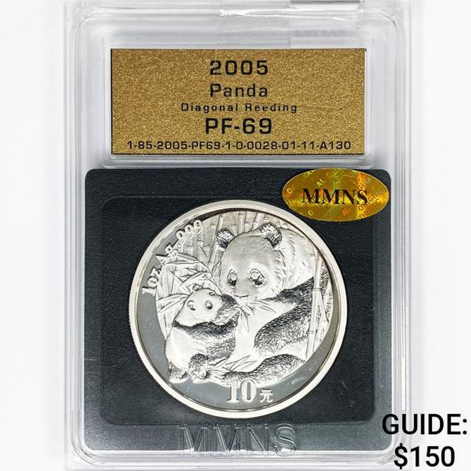 2005 Panda 1oz silver MMNS PF69 Diagonal Reading