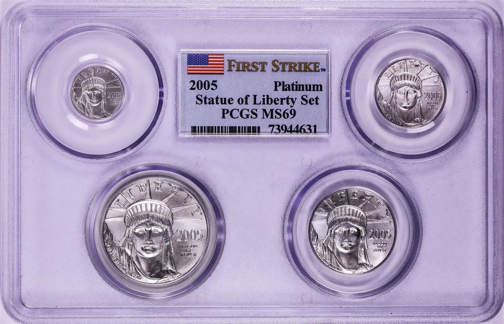 One 2005 Platinum Statue of Liberty (4) Coin Set PCGS MS69 First Strike. PCGS Graded.