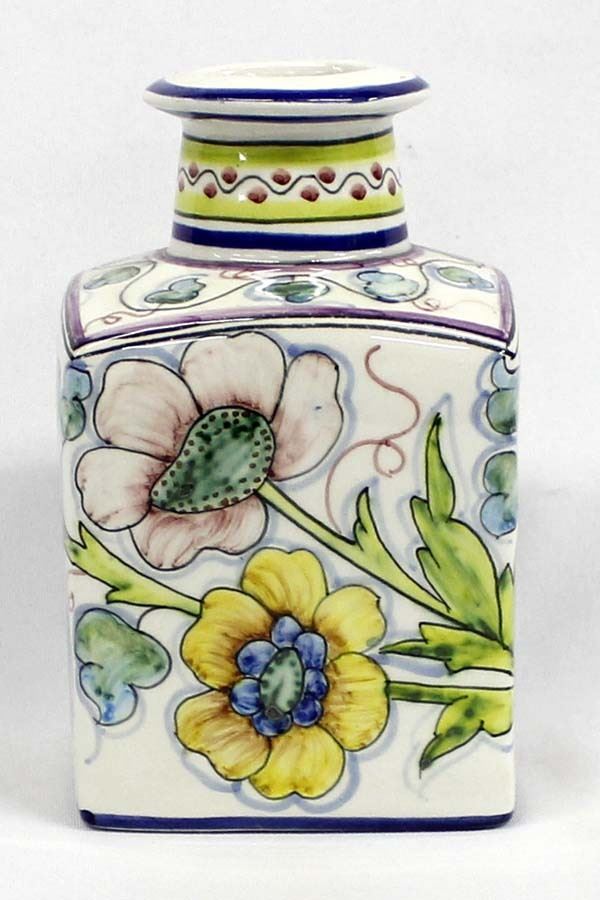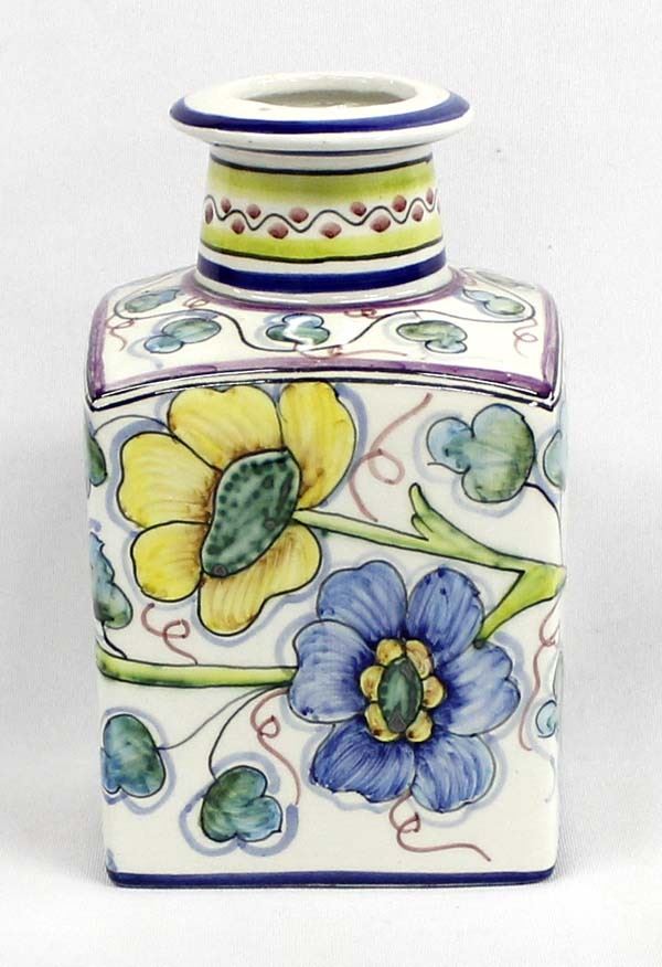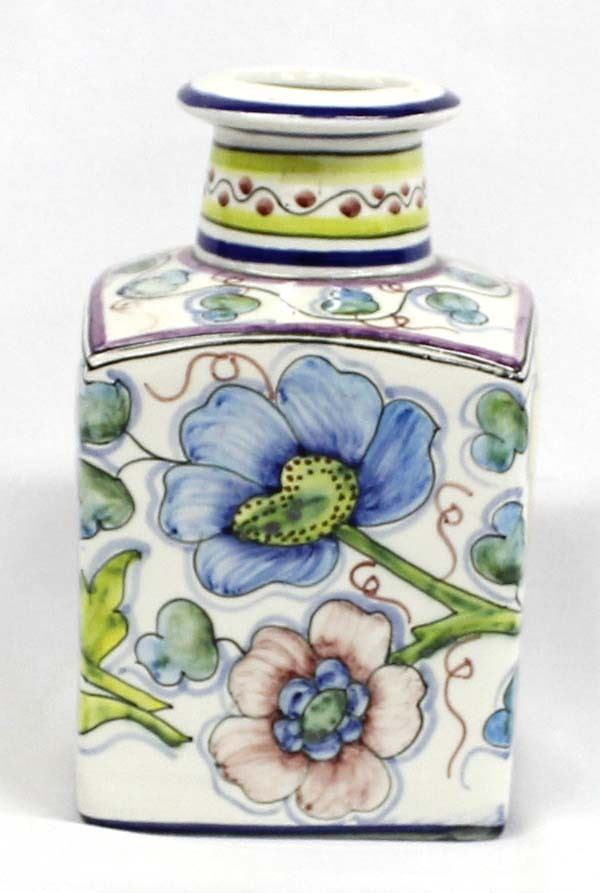 2005 Portuguese Pottery Vase, measures 4'' x 6.5'' x 4'', bottom is marked ''05 Hand-Painted Portugal'', beautiful colors
