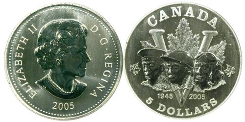 Special commemorative issue End of WWII, .9999 fine silver privy maple leaf.