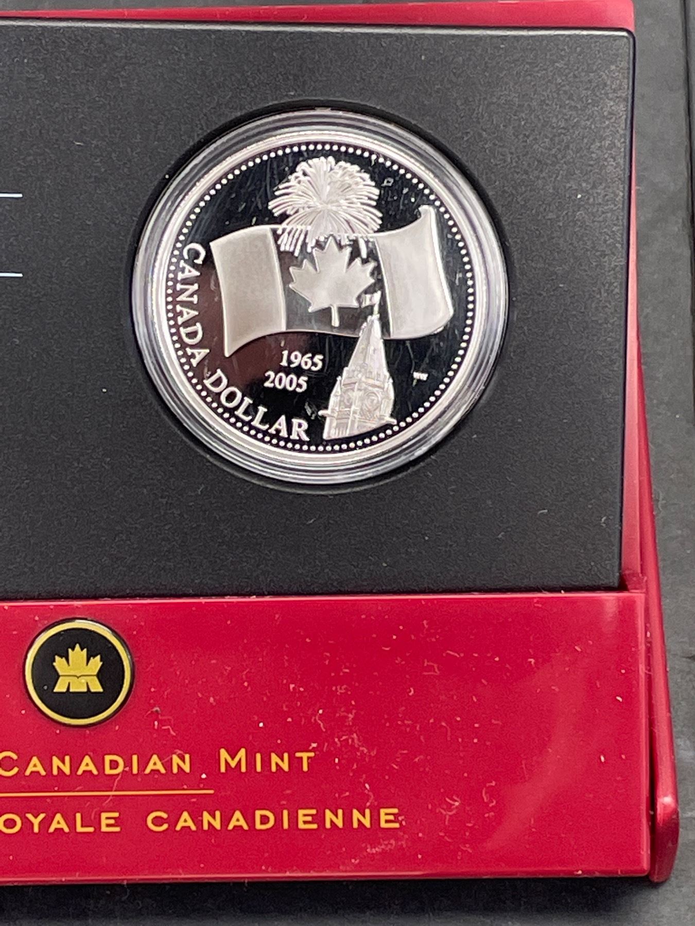 2005 Proof Silver Dollar (1965 - 2005) 40 Years Canadian Flad Orig. RCM