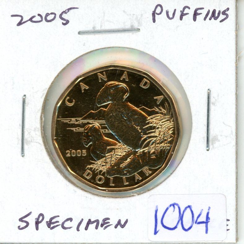 2005 Puffins Loonie Dollar. This special Puffins Loonie is only available in the Specimen set.