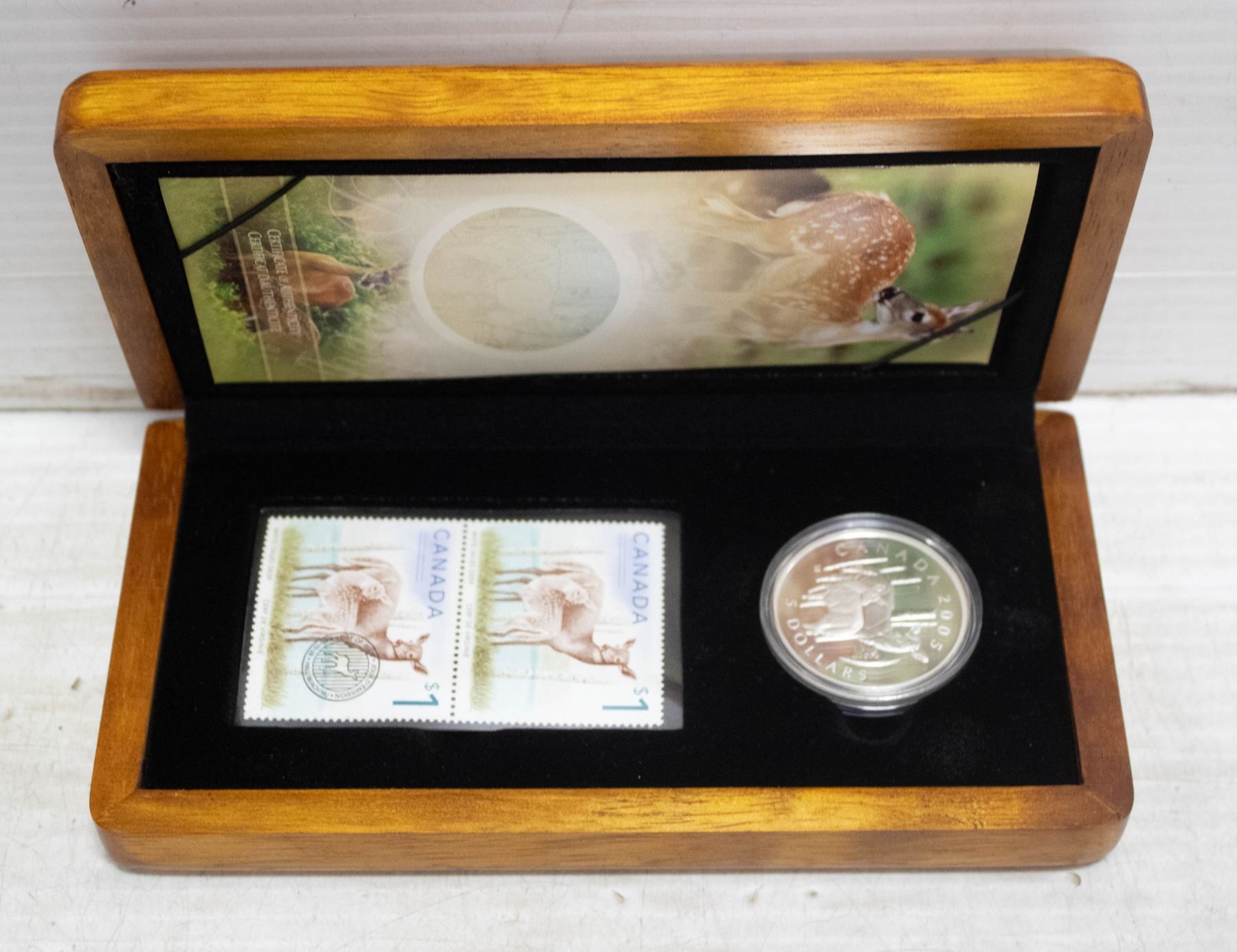 2005 RCM SILVER $5 PROOF DEER COIN /STAMPS