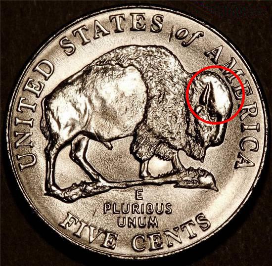 RARE highly collectible and sought Jefferson/Bison nickel die error; reverse die error causing doudled tail and back; choice BU
