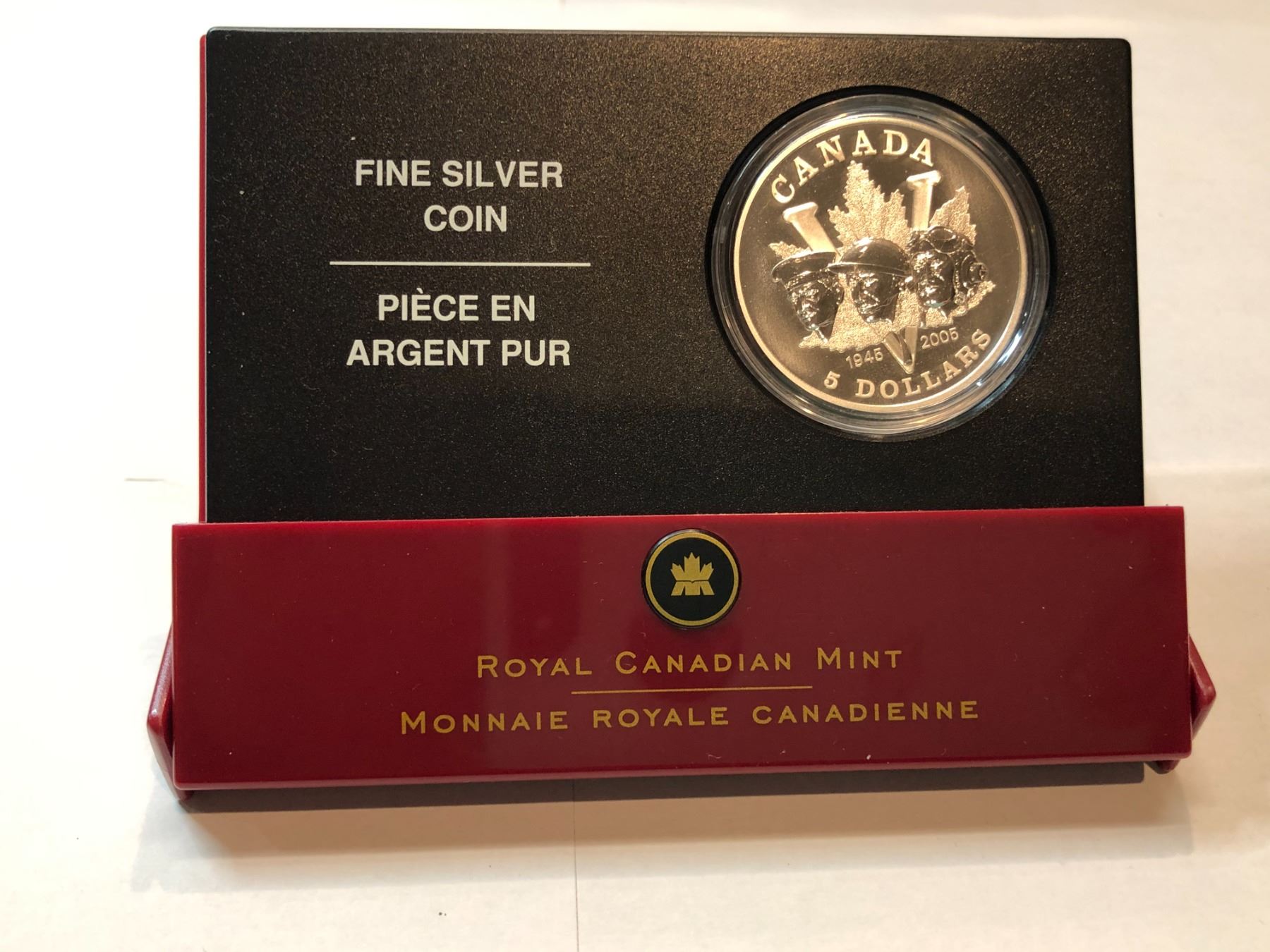 2005 Royal Canadian Mint 60th Anniversary of the End of the Ssecond World War Fine Silver Coin This coin is 99.99$ Fine Silver and weighs 31.39g