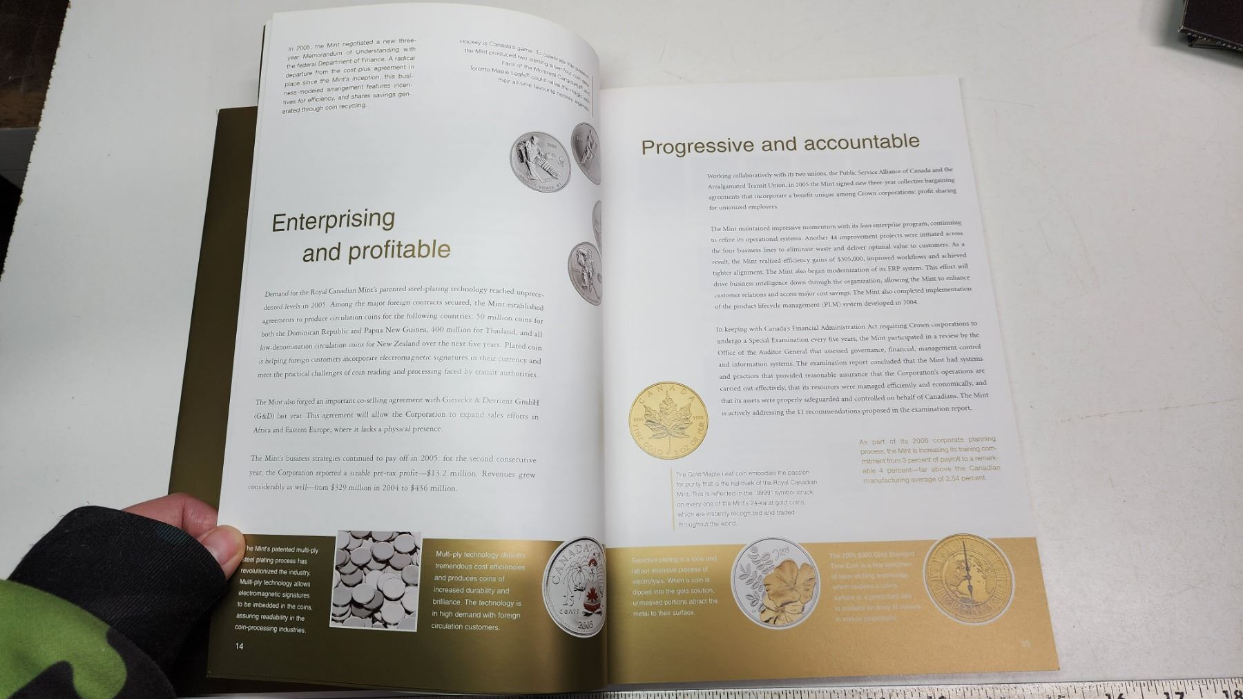 2005 Royal Canadian Mint Annual Report. Includes Proof 24-karat Gold Plated Sterling Silver 5 Cents.