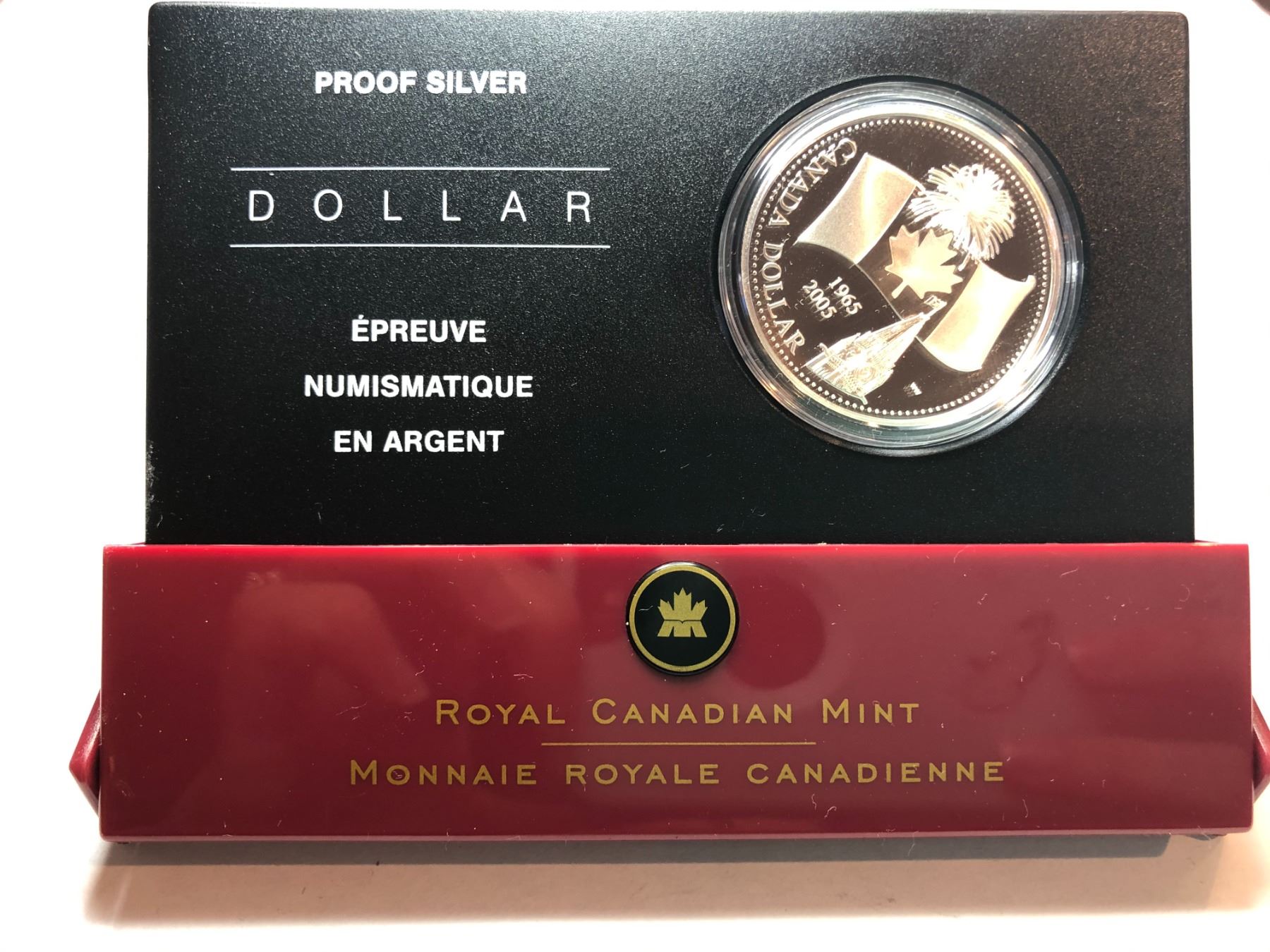 2005 Royal Canadian Mint Proof Silver Dollar - This $1 coin is 99.99% fine silver and weighs 25.175g