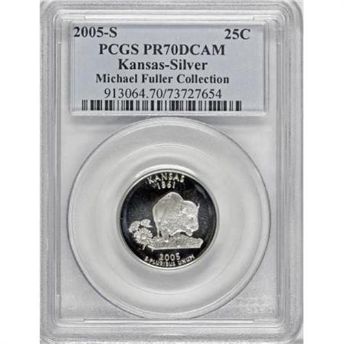 <B>2005-S 25C Kansas Silver PR70 Deep Cameo PCGS.</B></I> Michael Fuller Collection. PCGS Population (89/0). NGC Census: (0/0). Numismedia Wsl. Price for NGC/PCGS coin in PR70: $60. (#913064)<BR><BR><b>Shipping:</b> Coins & Currency (<a target="_blank" href="http://www.heritageauctions.com/common/shipping.php">view shipping information</a>)