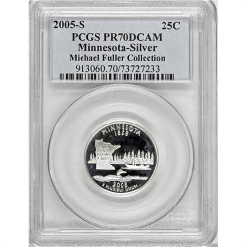 <B>2005-S 25C Minnesota Silver PR70 Deep Cameo PCGS.</B></I> Michael Fuller Collection. PCGS Population (124/0). NGC Census: (0/0). Numismedia Wsl. Price for NGC/PCGS coin in PR70: $65. (#913060)<BR><BR><b>Shipping:</b> Coins & Currency (<a target="_blank" href="http://www.heritageauctions.com/common/shipping.php">view shipping information</a>)