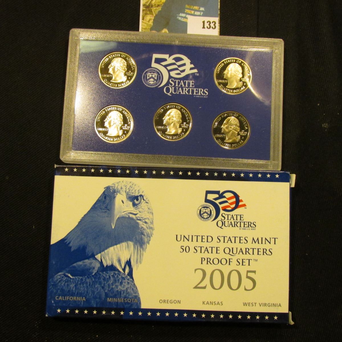2005 S Five-Piece Statehood U.S. Quarter Proof Set. Original as issued. Five-piece Set.