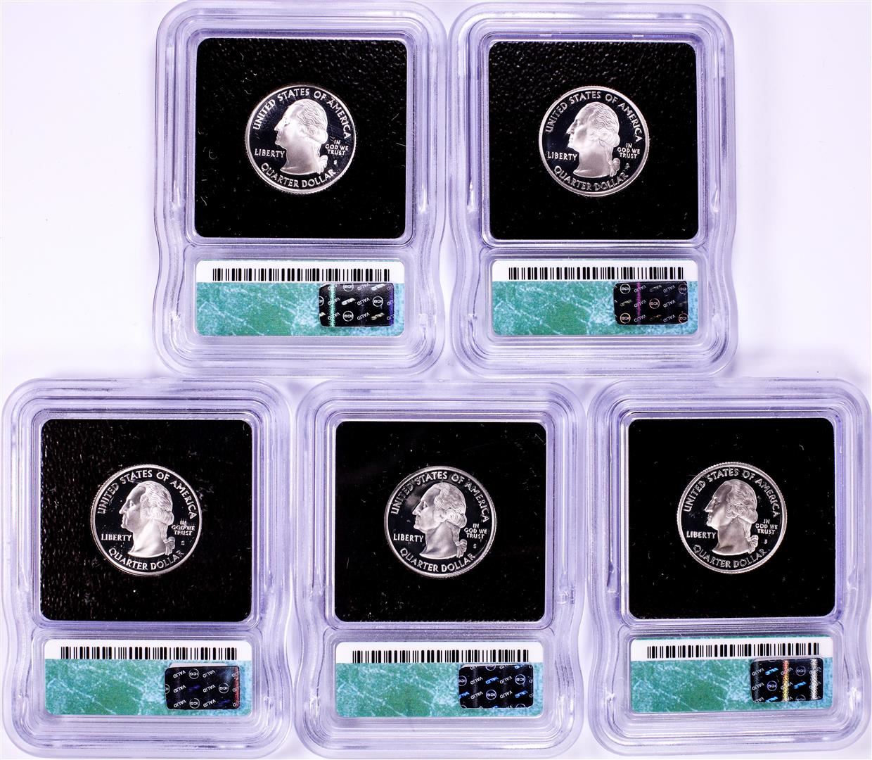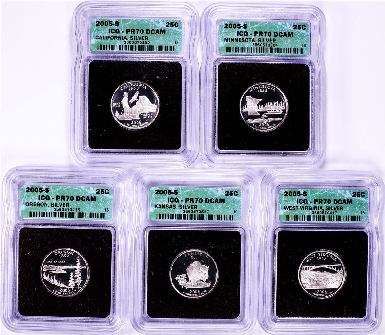 One 2005-S Silver Proof State Quarter (5) Coin Set ICG PR70DCAM.