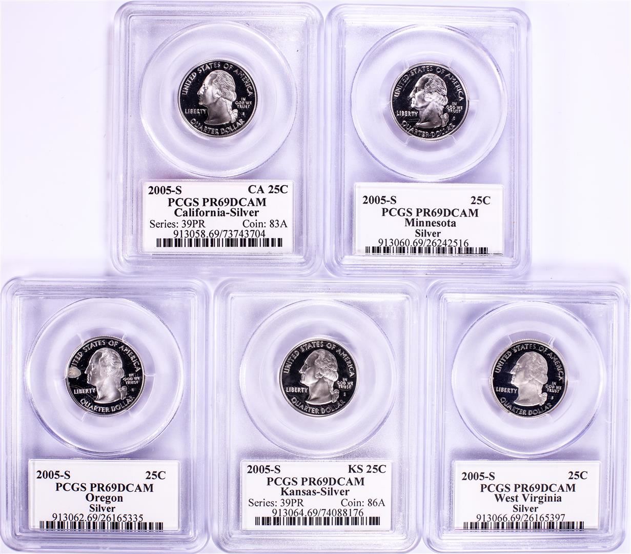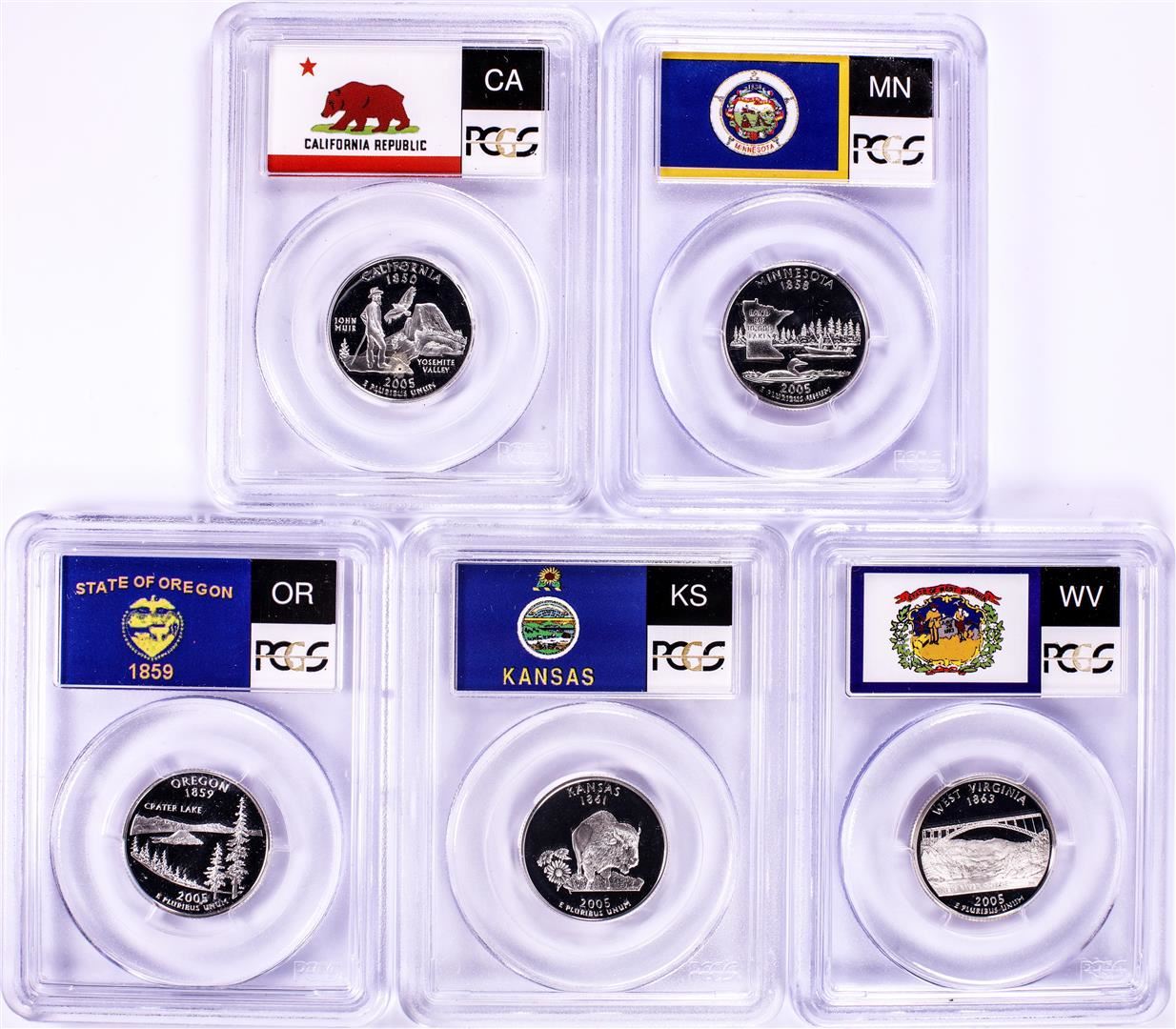 One 2005-S Silver Proof State Quarter (5) Coin Set PCGS PR69DCAM.