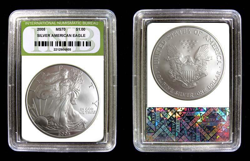 2005 SLABBED SILVER AMERICAN EAGLE HIGHEST GRADE - You may not receive the exact coin shown, but you will receive one of the same or better quality.
