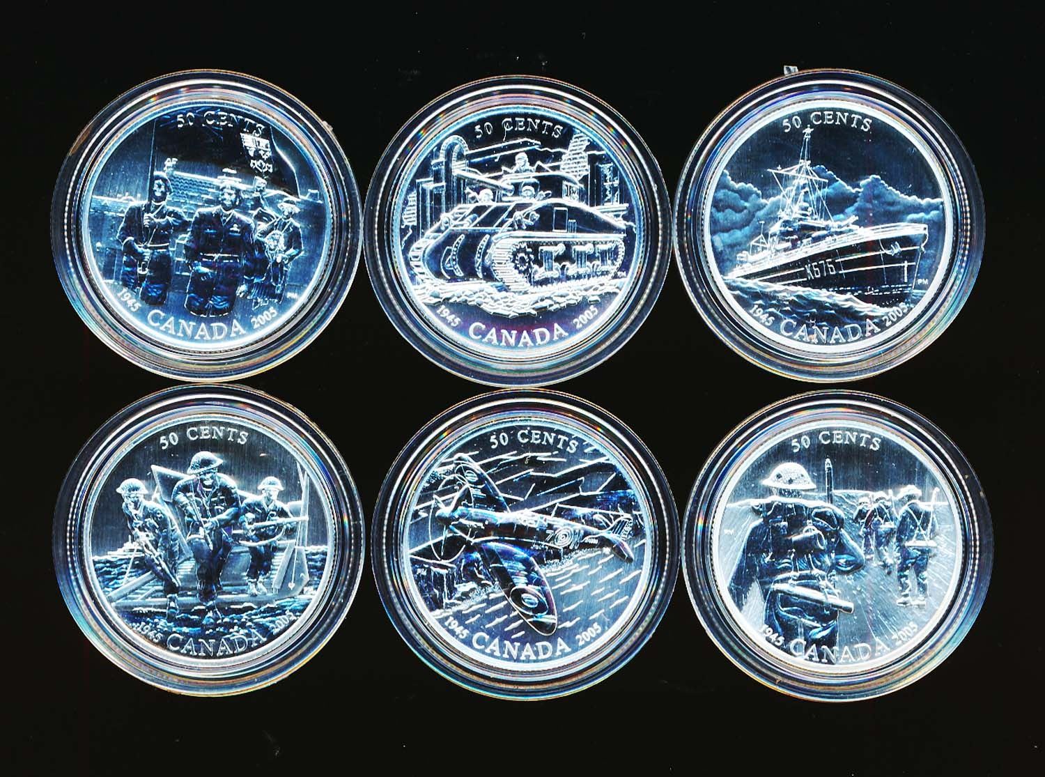 2005 Second World War Set of Fifty Cents Specimen Coins w/COA and 6 Hole Box & Sleave