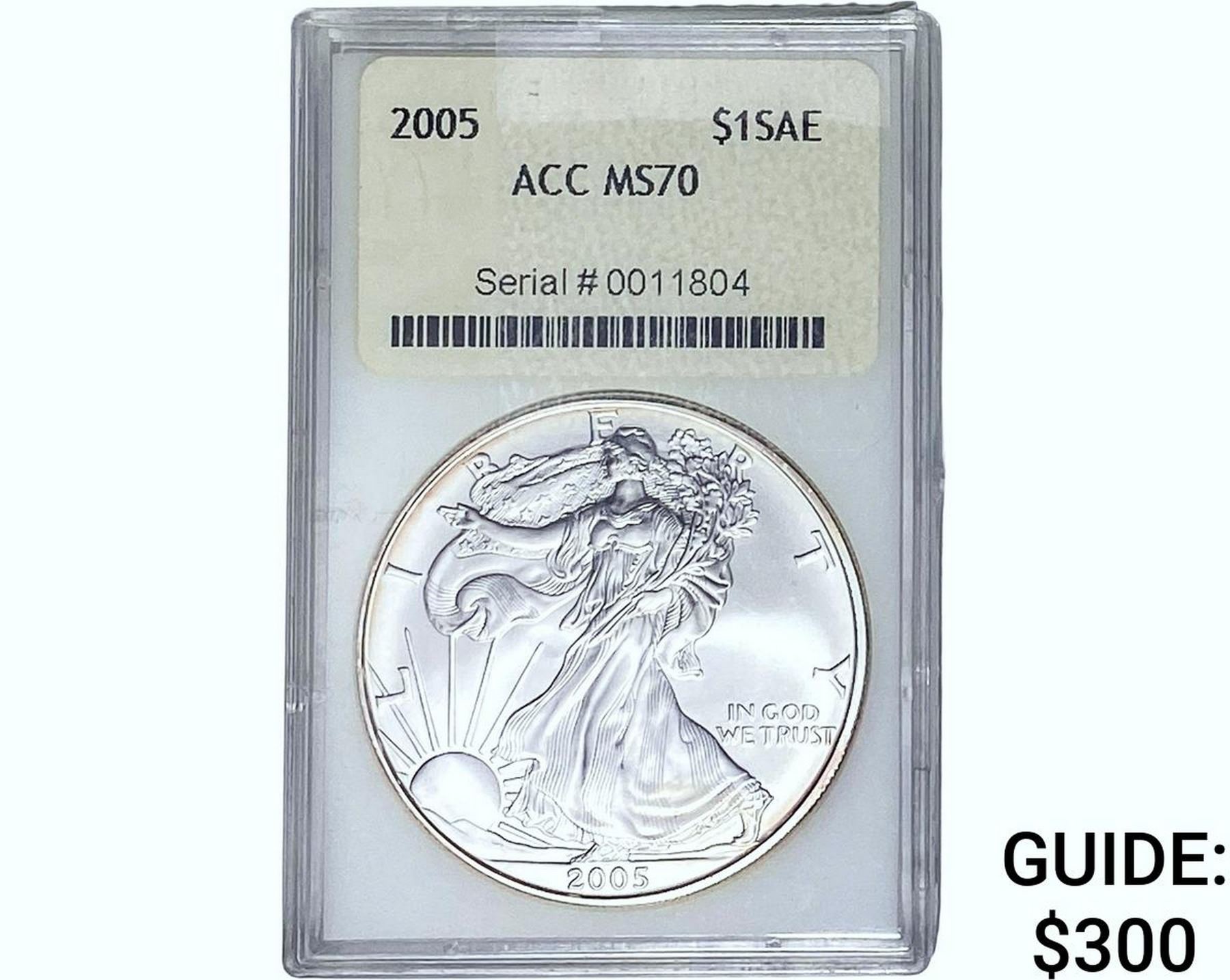 e. Coins sold referencing a third-party grading service are sold “AS IS” without any express or implied warranty, except for a guarantee by GSA that they are genuine. Removal or alteration of the holder, voids all of Bidder’s claims concerning that Product. Certain warranties may be available from the grading services and Bidders are referred to them for further details: Numismatic Guaranty Corporation (NGC), PO Box 4776, Sarasota, FL 34230, www.ngccoin.com/services/writtenguarantee.asp; Professional Coin Grading Services (PCGS), PO Box 9458, Newport Beach, CA 92658, www.pcgs.com/guarantee.html; ANACS, 6555 S. Kenton St., Ste. 303, Englewood, CO 80111; and Independent Coin Grading Co. (ICG), 7901 East Bellview, Ave., Suite 50, Englewood, CO 80111.