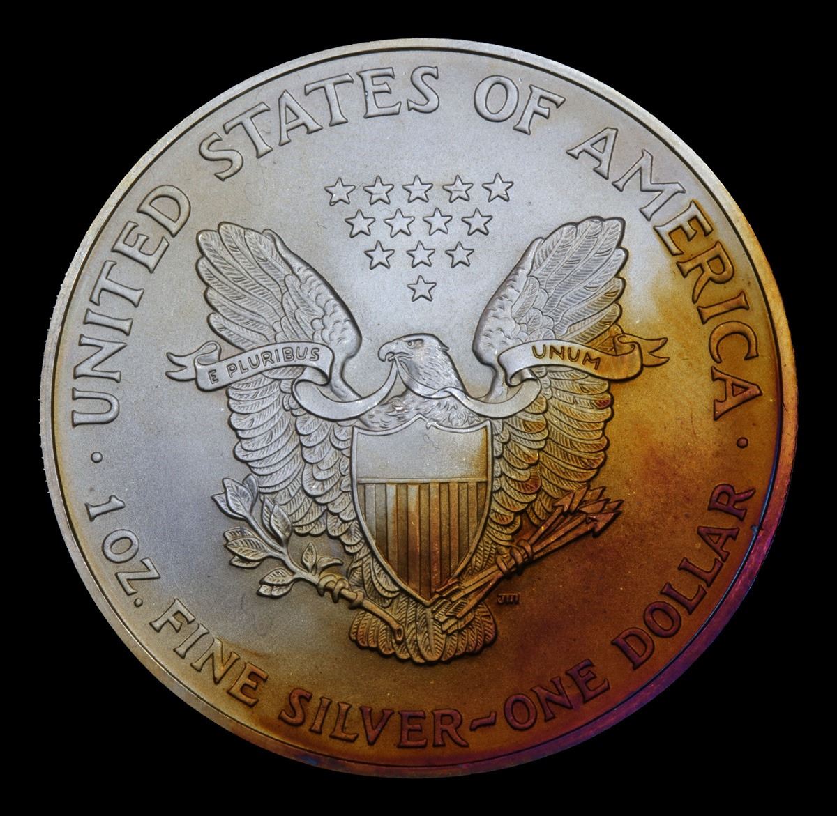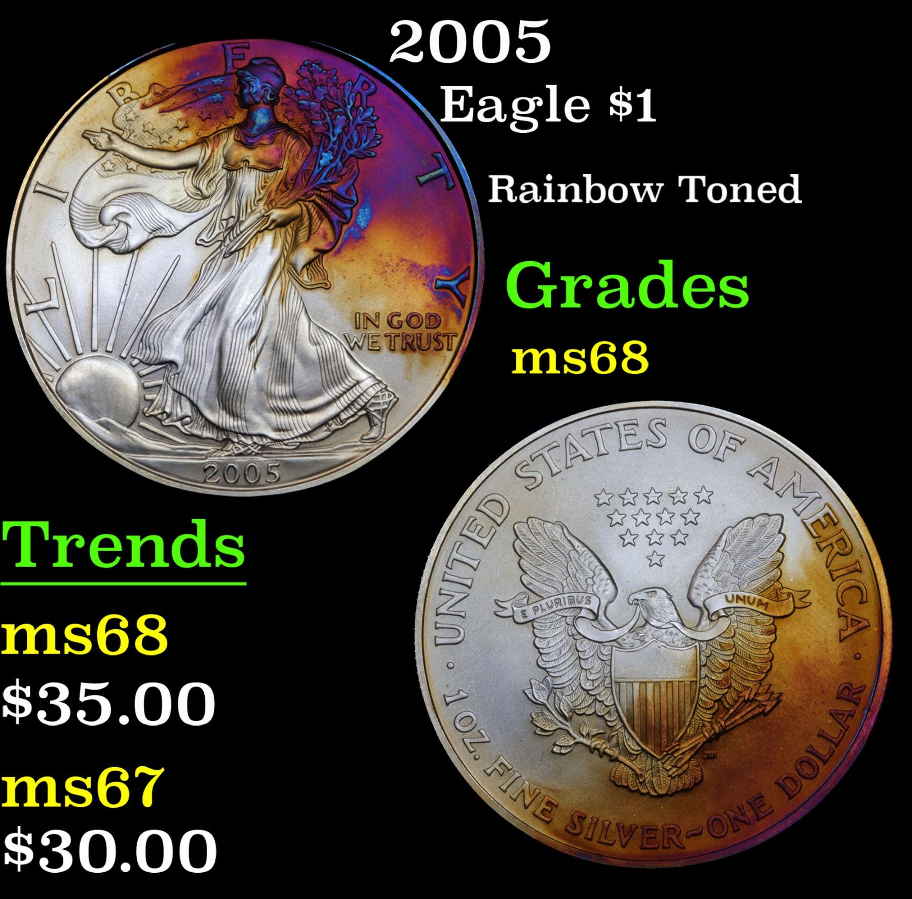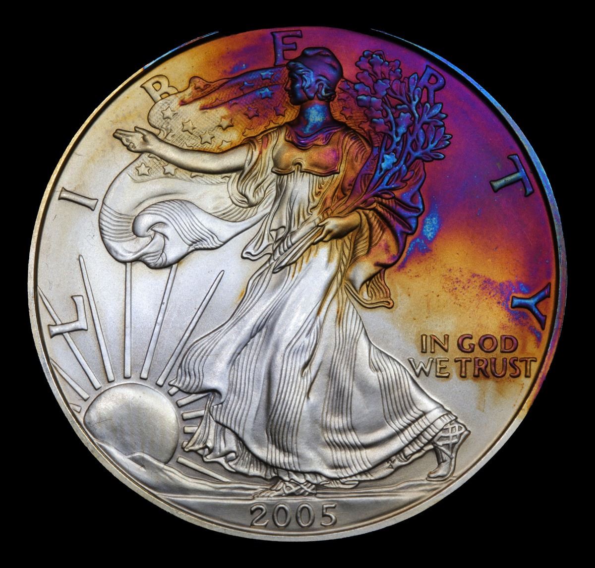 2005 Rainbow Toned . Silver Eagle Dollar $1 Grades GEM+++ Unc.