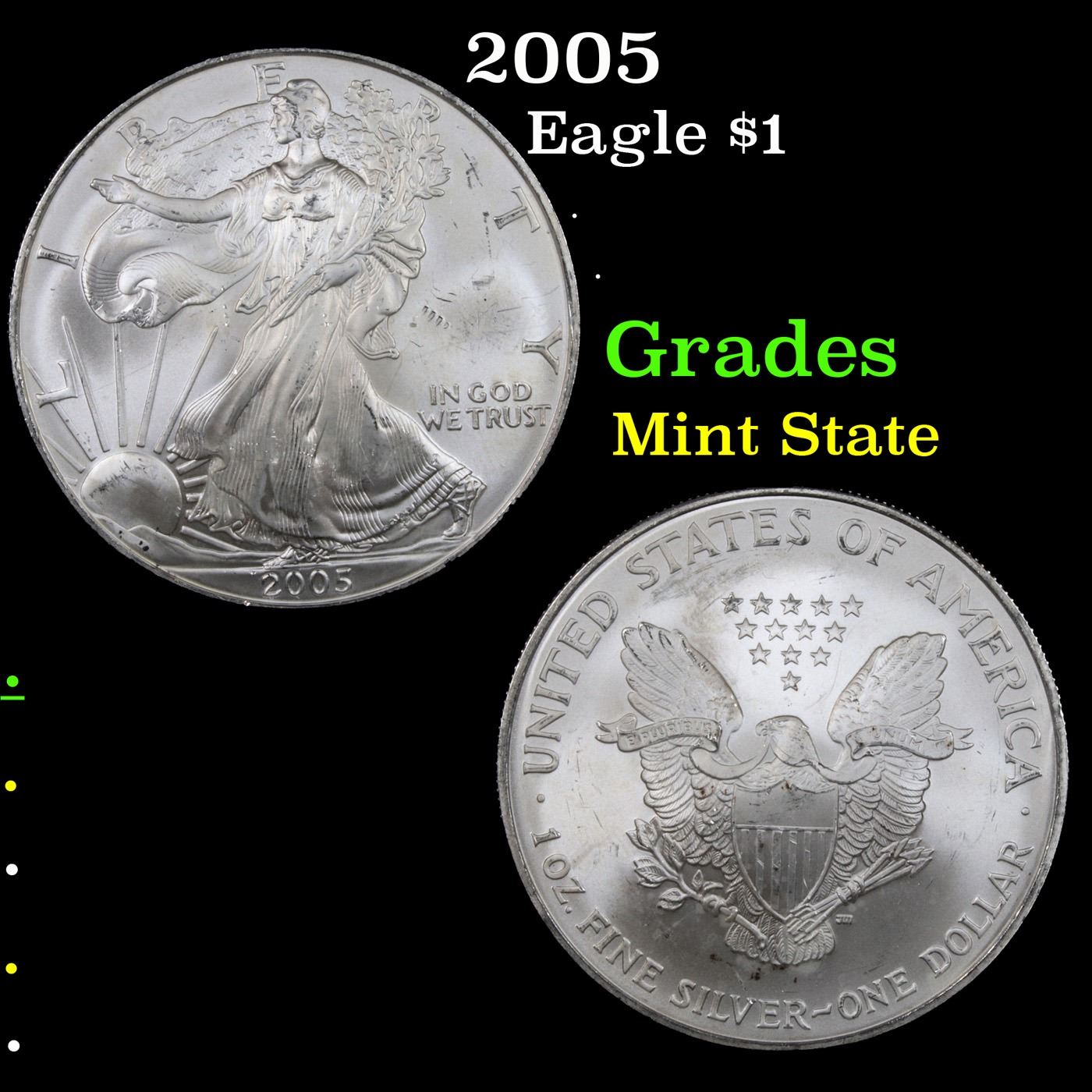 2005 Silver Eagle Dollar $1 Grades Mint State.