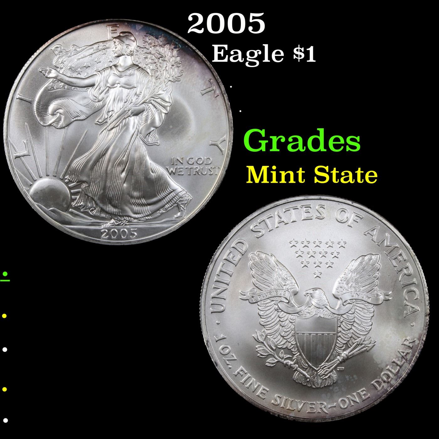 2005 Silver Eagle Dollar $1 Grades Mint State.