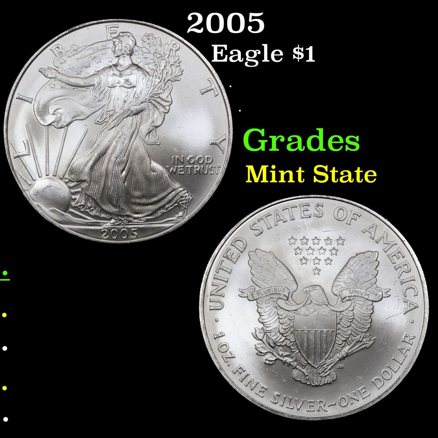 2005 Silver Eagle Dollar $1 Grades Mint State.