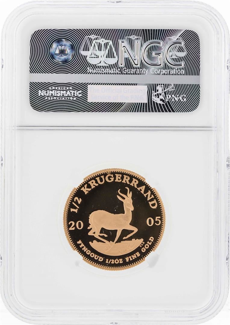 One 2005 South Africa 1/2 Krugerrand Fine Gold Coin NGC PF69 Ultra Cameo. NGC Certified.