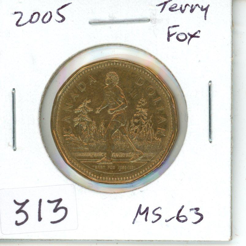 2005 Terry Fox Loonie Dollar. MS-63 from an original roll.