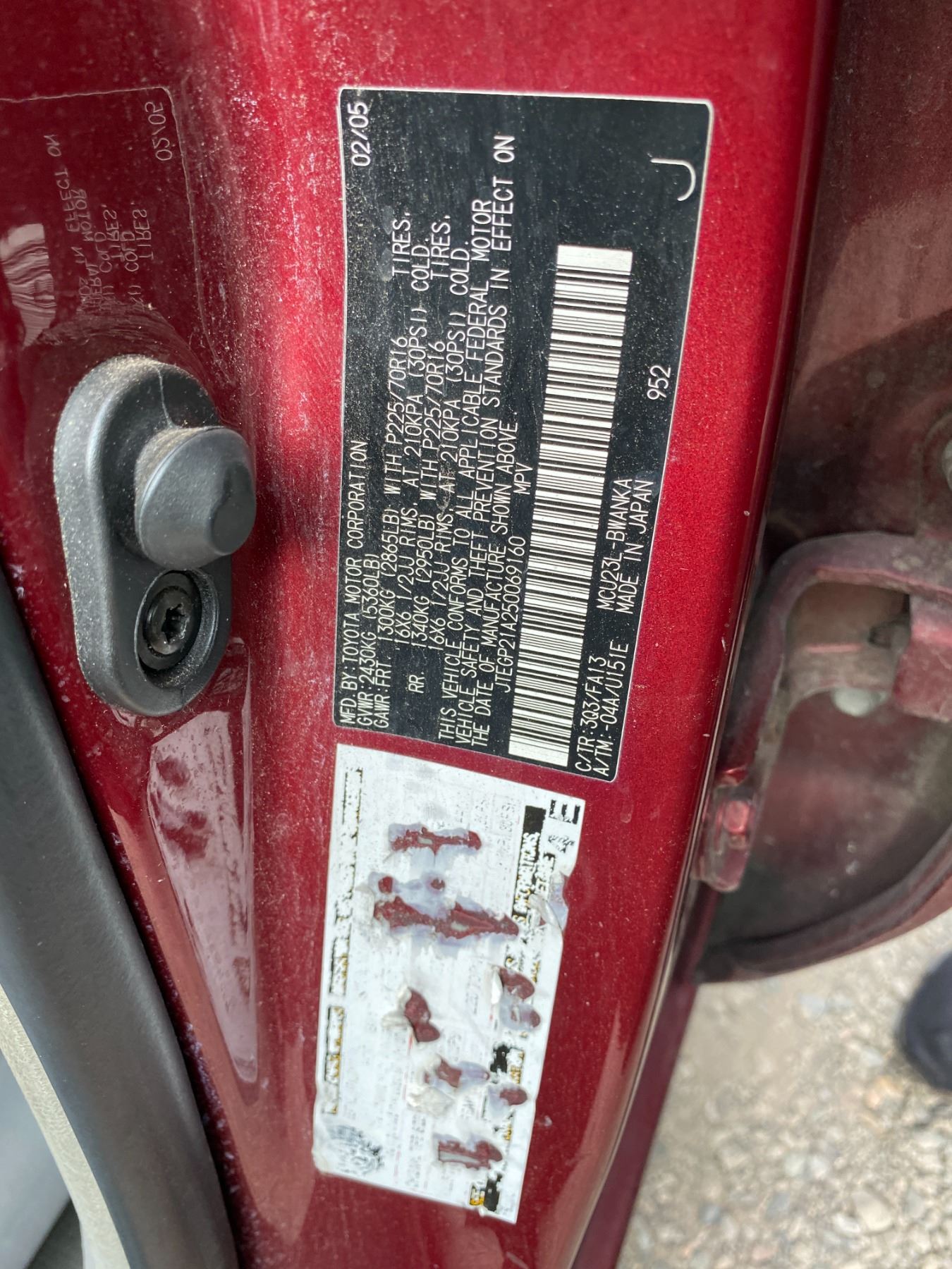 VIN:JTEGP21A250069160