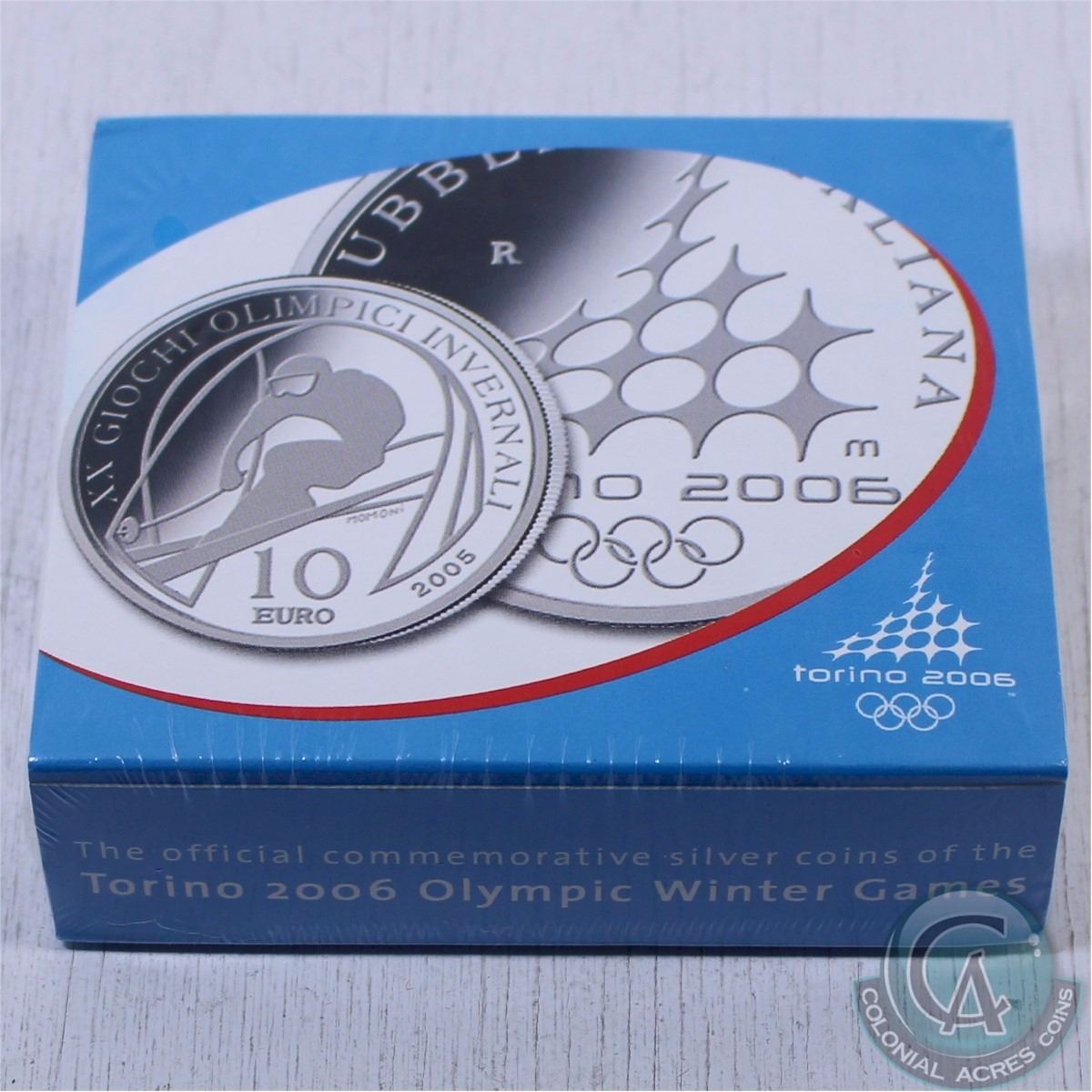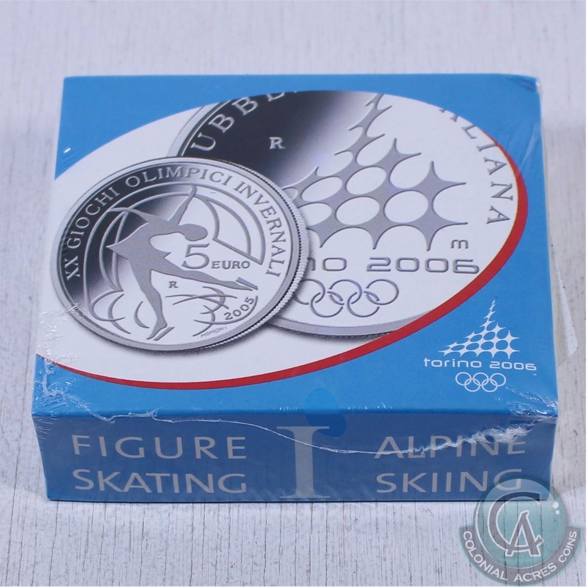 2005 Turino Italy Olympic Winter Games 5-Euro Figure Skating & 10-Euro Alpine Skiing Sterling Proof Silver 2-coin set.