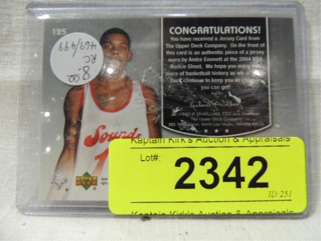 2005 UPPER DECK #125 JERSEY SEGMENT BASKETBALL CARD ANDRE EMMETT. AS SHOWN. VIEW PICTURE FOR DETAIL.
