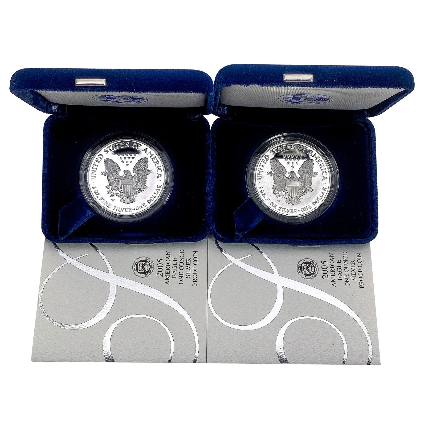 2005 US 1oz Silver Eagle Proof Coins [2 Coins]