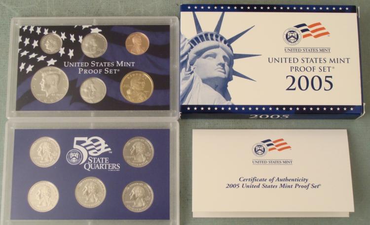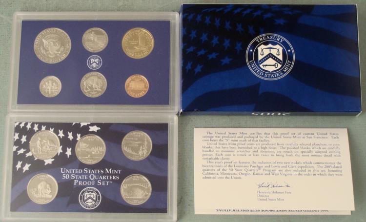 2005 US Mint 11 Piece Proof Set with Quarters * Includes: Box and COA