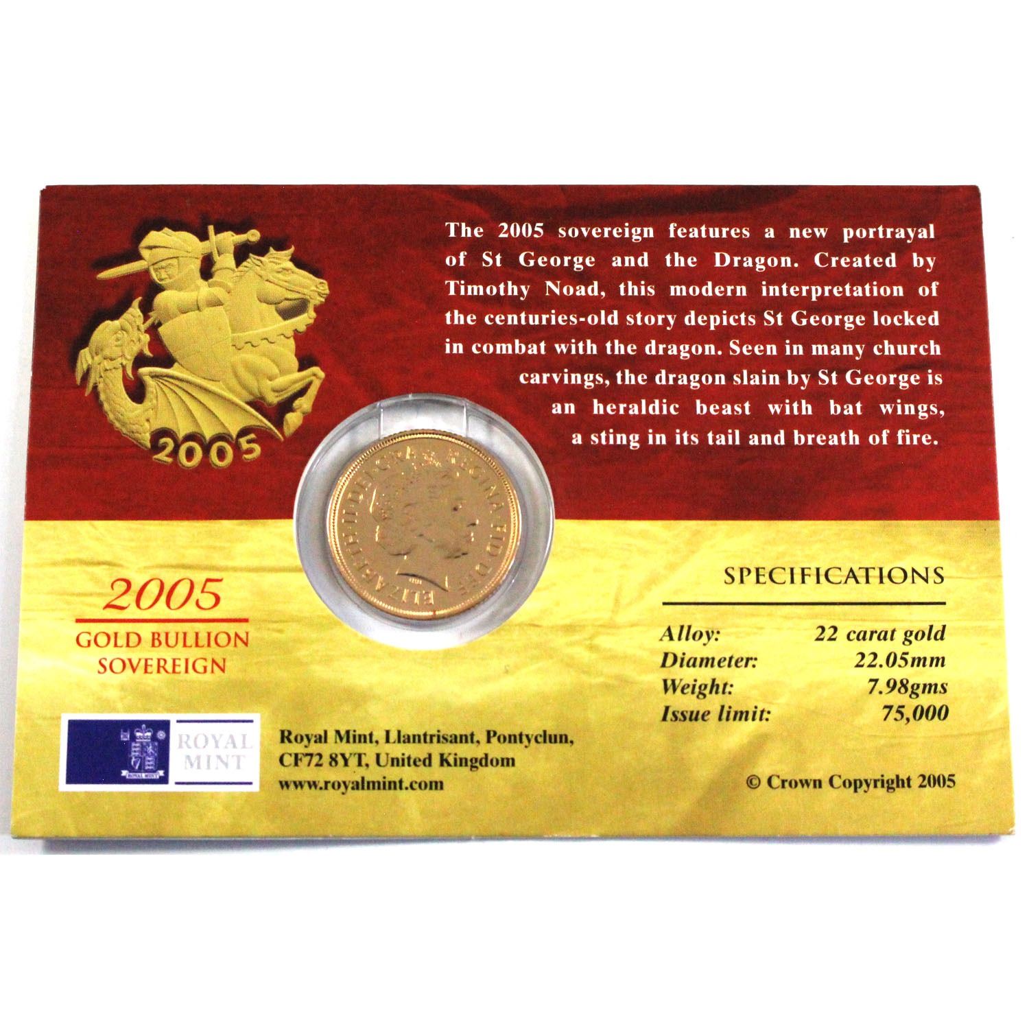 2005 United Kingdom Gold Sovereign in Cardboard Card (Coin lightly scratched). Contains 0.2354oz fine gold.