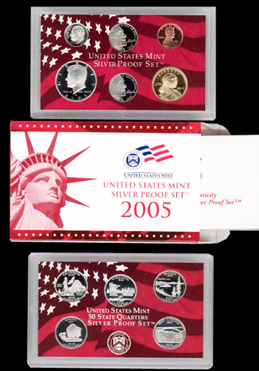 The Set contains 5 90% Silver Proof State Quarters, a 90% Silver Proof Half Dollar, a 90% Silver Proof Dime, as well as 3 additional Proof coins Including the Sacagawea Proof Dollar coin. Complete with Original Packaging and COA. Note* The set contains about 1 1/2 Ounces of Pure Silver. Estimated Value $50