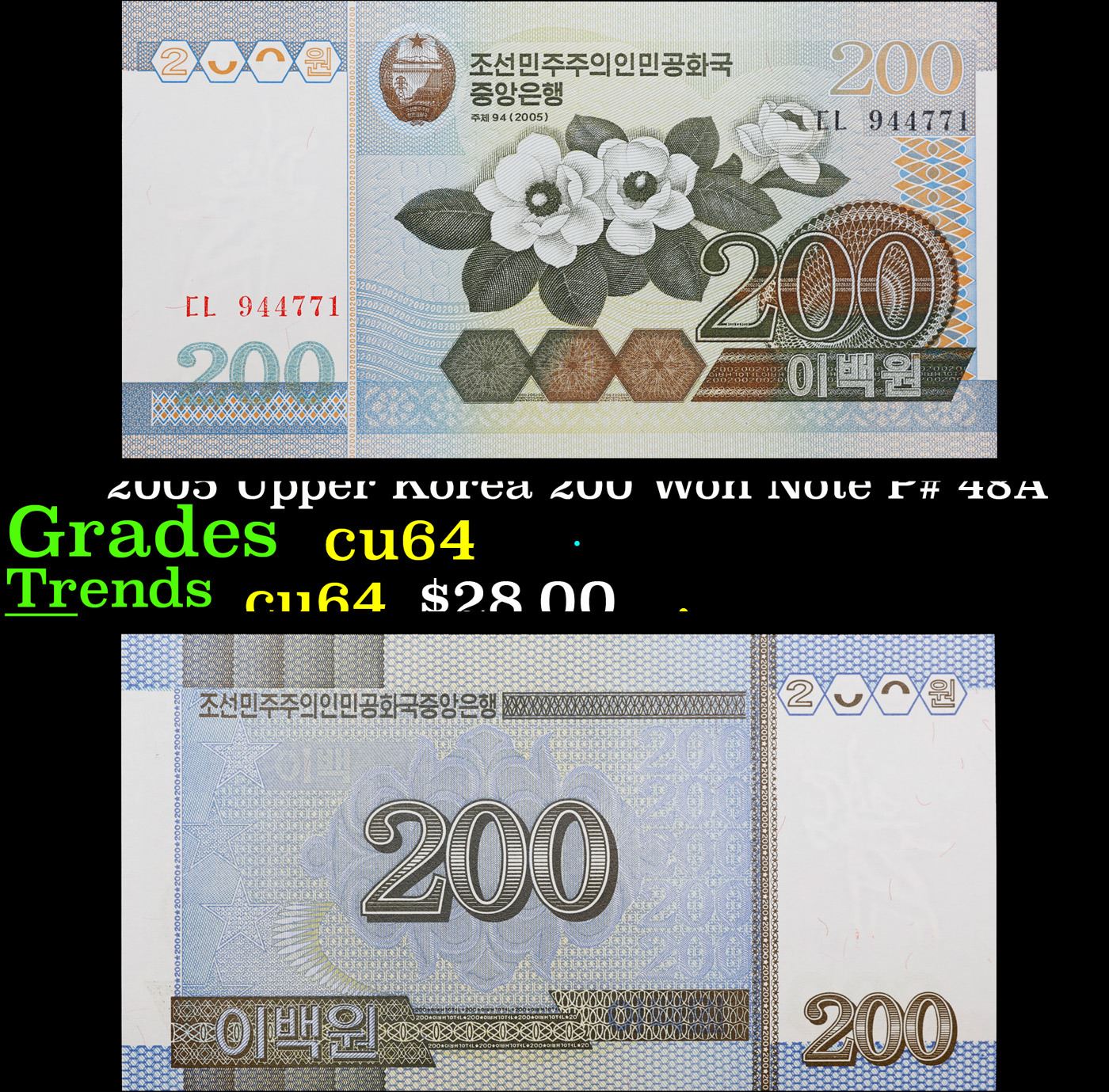 2005 Upper Korea 200 Won Note P# 48A Grades Choice CU.
