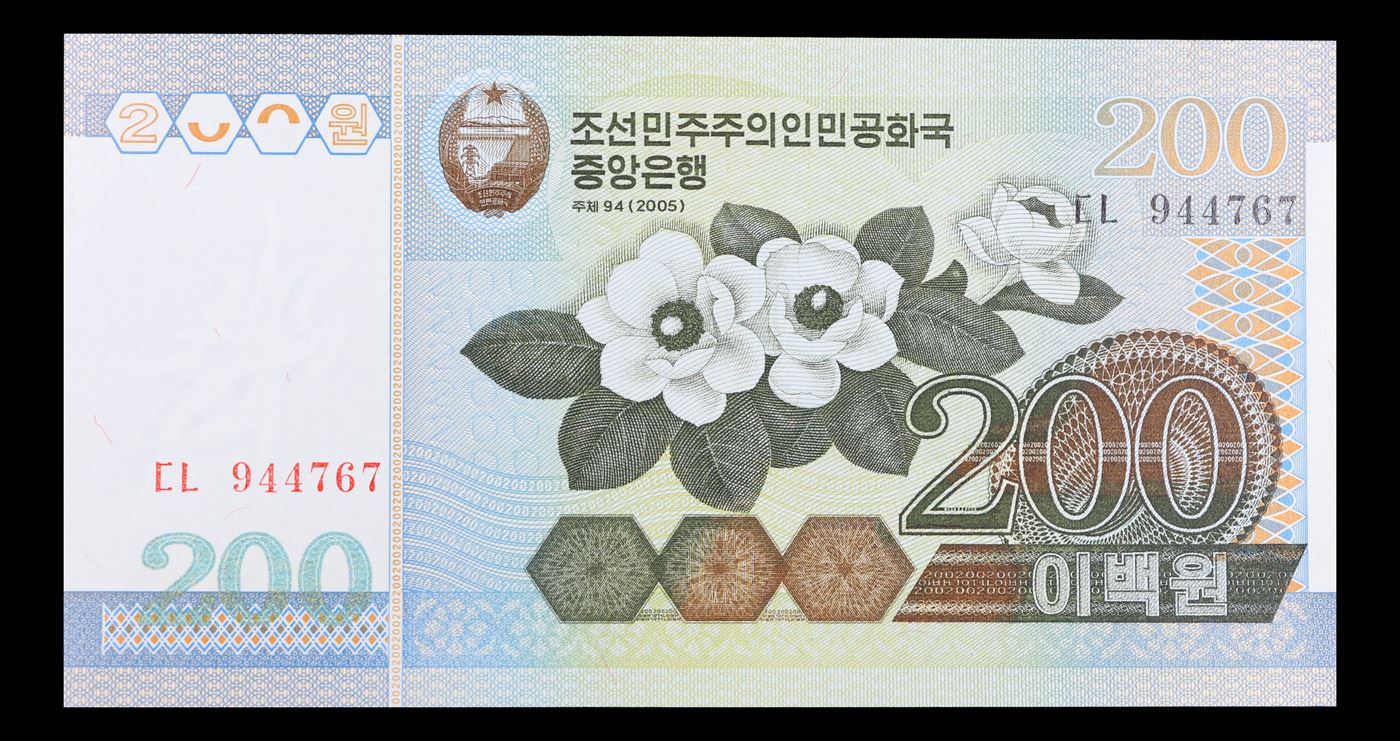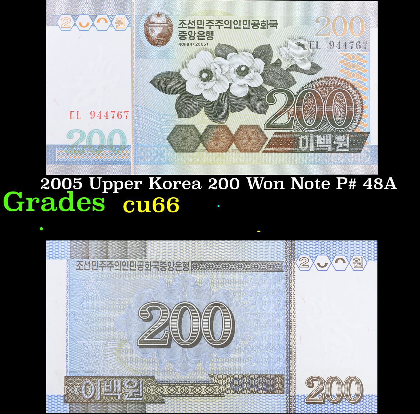 2005 Upper Korea 200 Won Note P# 48A Grades Gem+ CU.