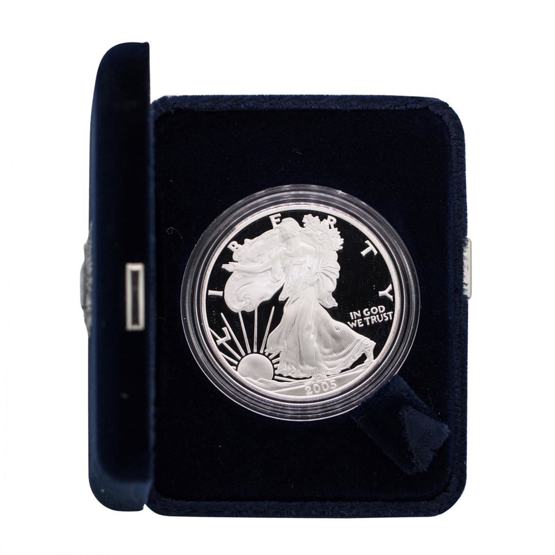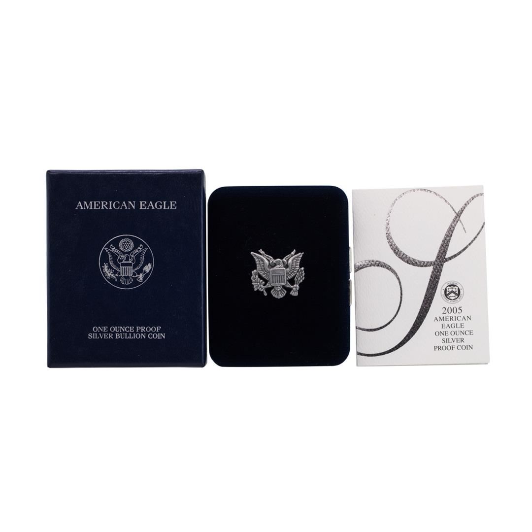 One 2005-W $1 American Silver Eagle 1 oz Fine Silver Bullion Proof Coin w/Box.